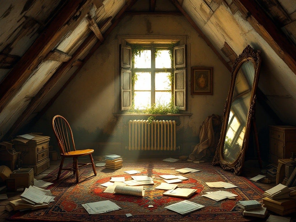 My eyelids flutter open, and I find myself on the floor in a room that is strangely…familiar. The musty smell of dust and antiques flirts with my nose and I sit up, my head spinning lightly. Whoa. What the heck happened?